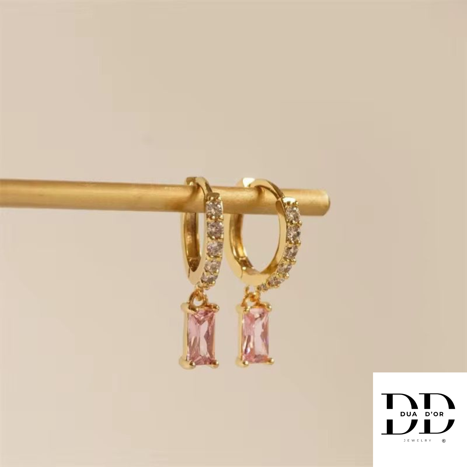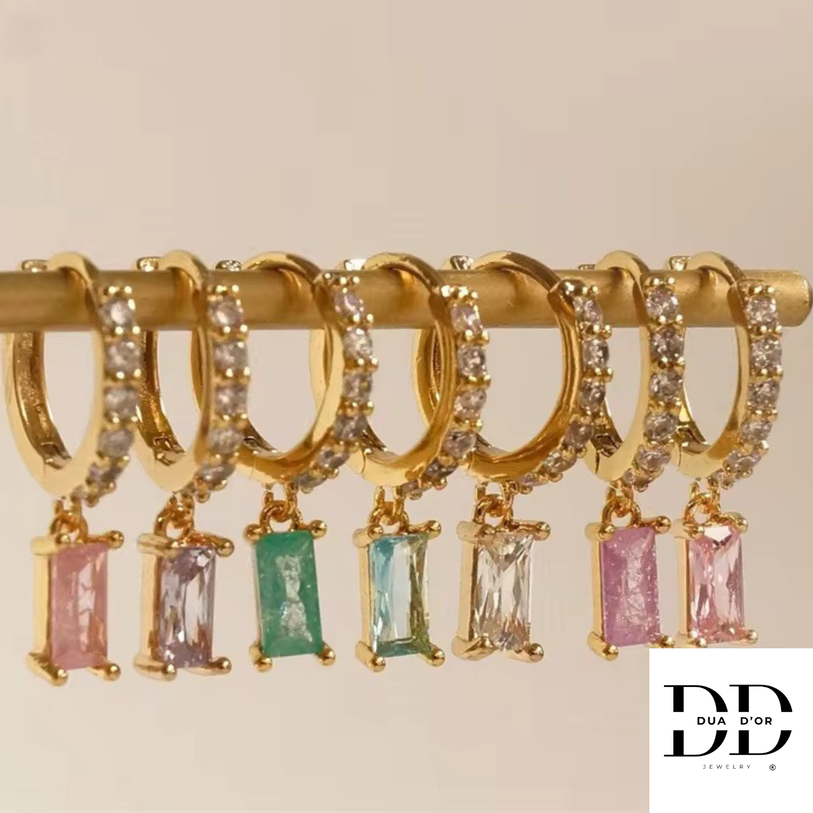 Deze Emerald grace stralen tijdloze elegantie uit. Deze goudkleurige oorringen zijn verfijnd afgewerkt met een fonkelende rij zirconia steentjes en een schitterende hanger met een rechthoekige edelsteenlook, Perfect voor zowel Chique avondlook als een stijlvolle dagelijkse outfit. De subtiele glans en het Luxueuze kleurcontrast geven elk look een vleugje klasse en verfijning.