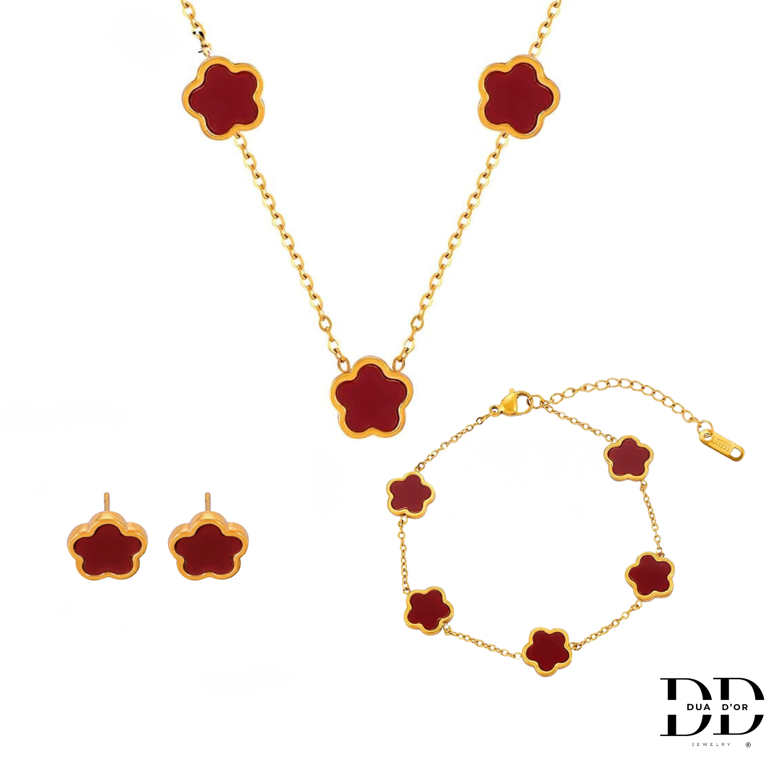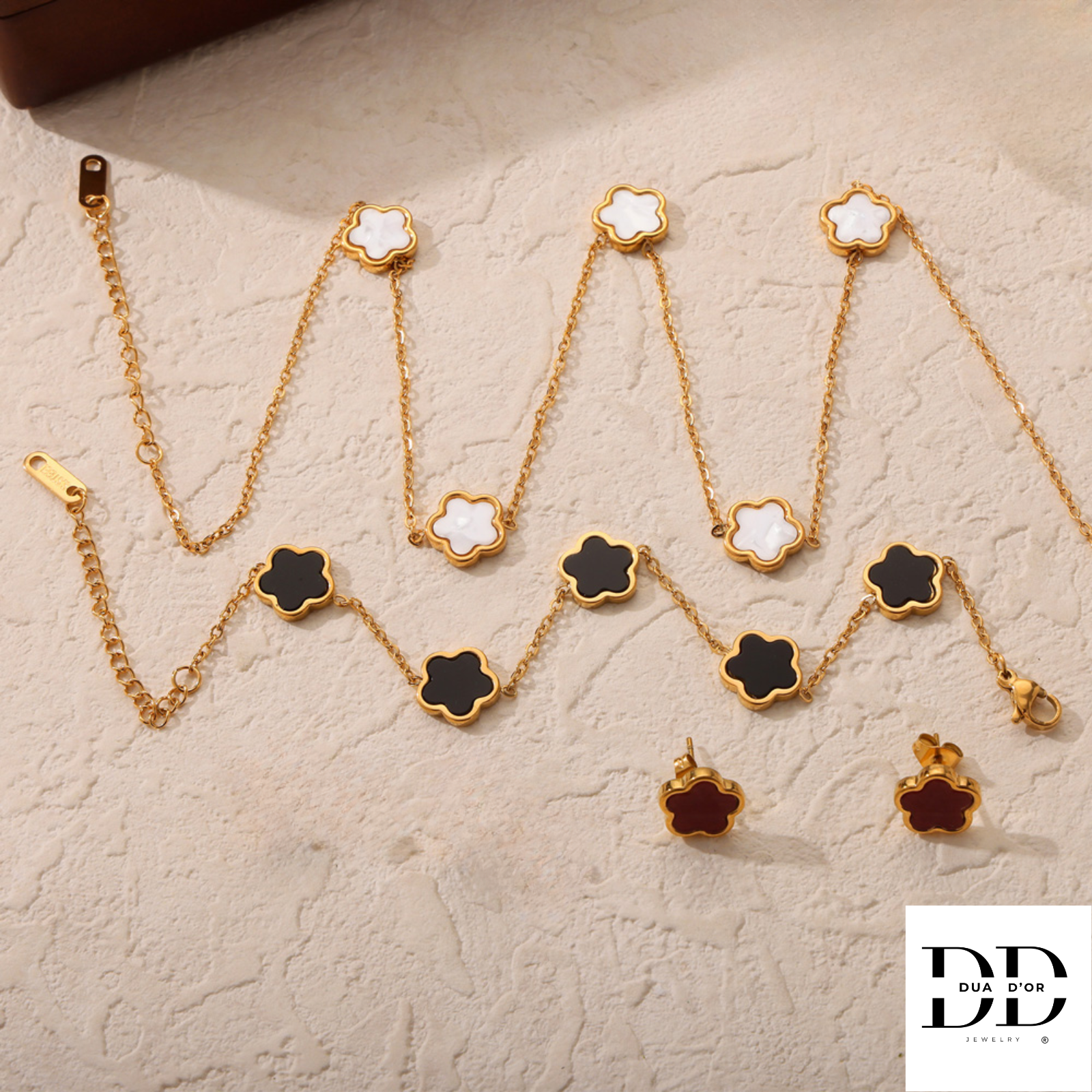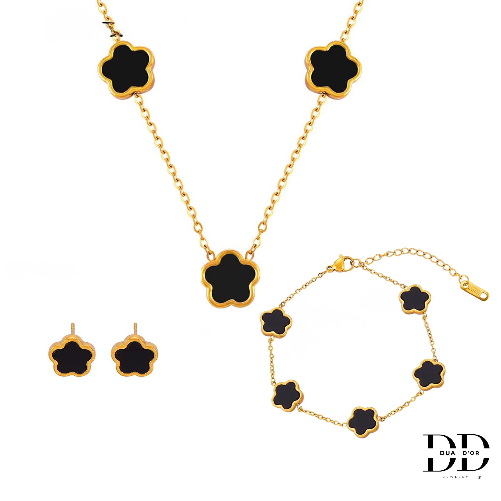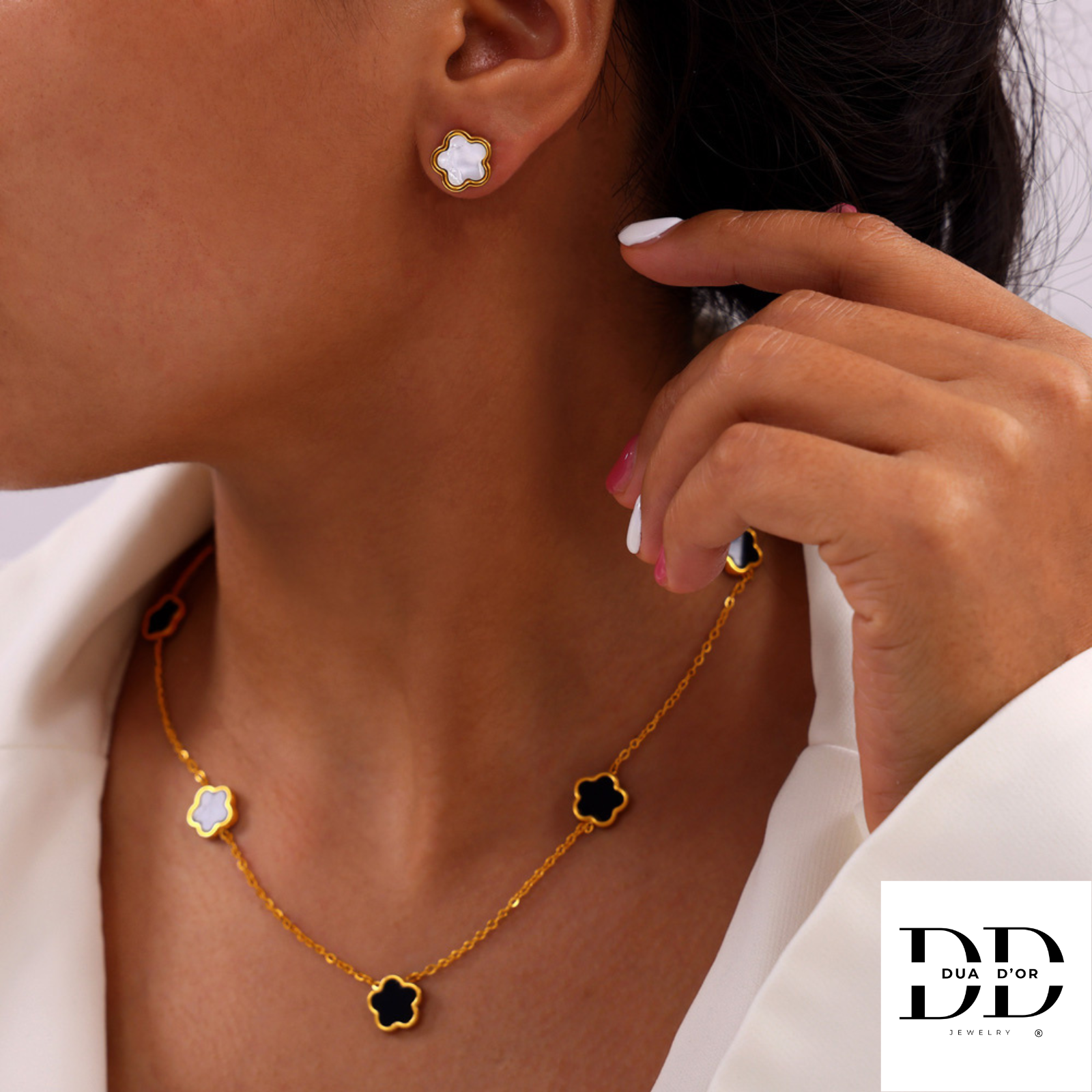 Draag de Fleur d’Or solo als oorbellen, halsketting, armband, of straal volledig met de hele set!
