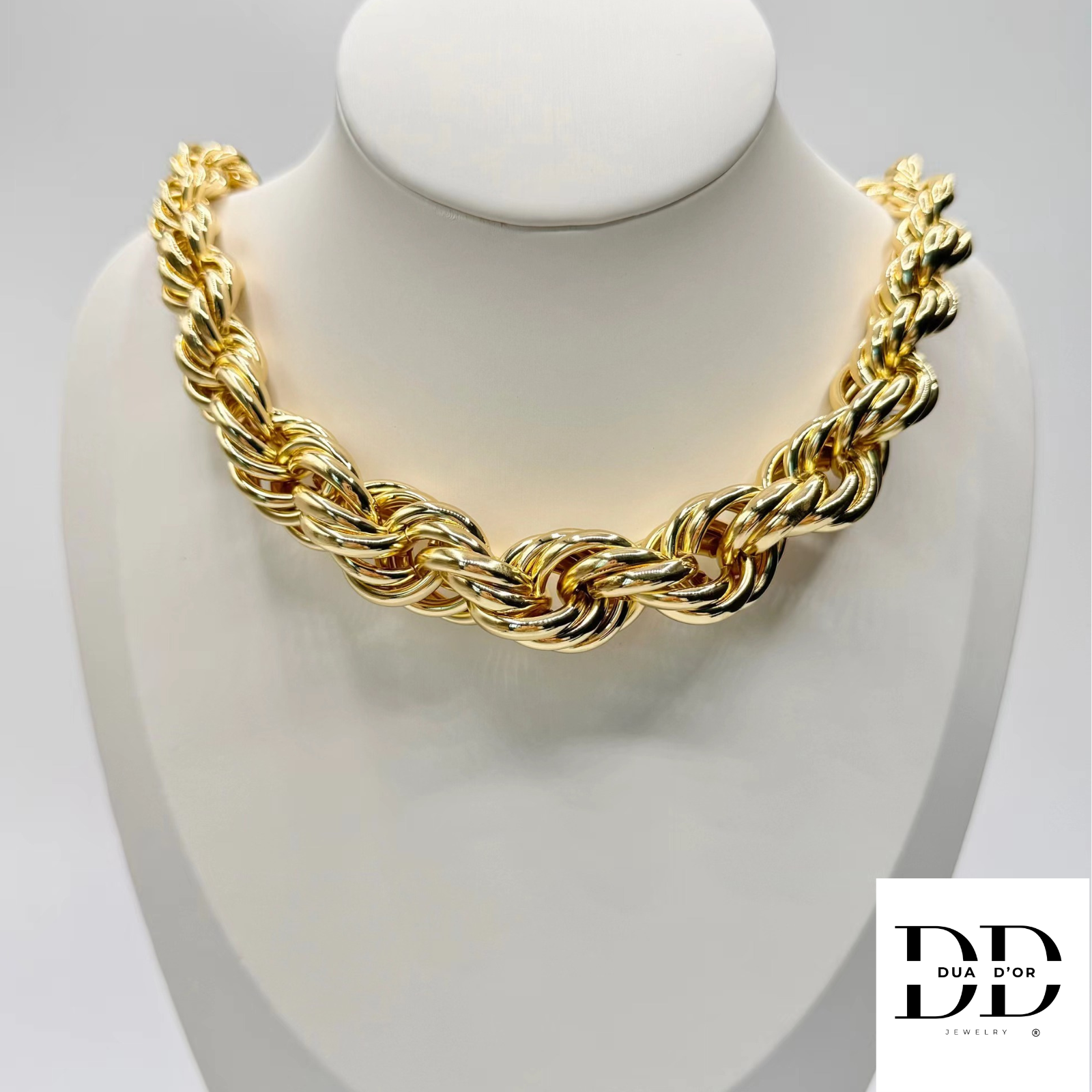 Maak een krachtig statement met deze hiphop chunky halsketting. Het grove, gedraaide design straalt zelfvertrouwen en urban luxe uit. Verkrijgbaar in zowel goud- als zilverkleur, is deze ketting een echte eyecatcher die elke outfit direct naar een hoger niveau tilt. Of je hem solo draagt of combineert met andere sieraden, de glanzende afwerking en robuuste look maken dit de perfecte accessoire voor wie durft op te vallen.