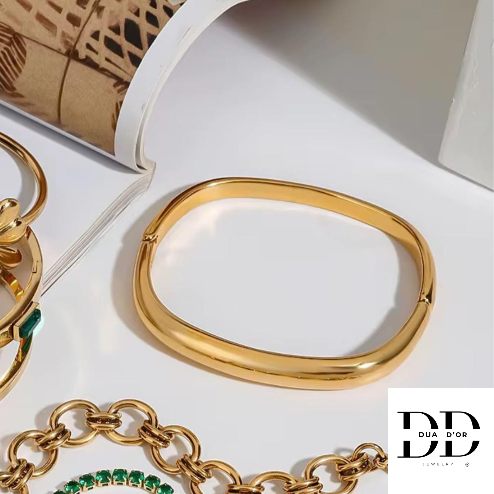 Deze elegante bangle van hoogwaardig roestvrij staal is een tijdloos accessoire dat bij elke outfit past. De armband heeft een gladde, goud of zilverkleurige afwerking en is zowel waterdicht als hypoallergeen, ideaal voor dagelijks gebruik zonder zorgen over verkleuring of irritatie. Met een comfortabele binnendiameter van 6 cm en een breedte van 0,80 cm, combineert hij stijl met draagcomfort. Perfect om solo te dragen of te combineren met andere sieraden voor een gelaagde look.